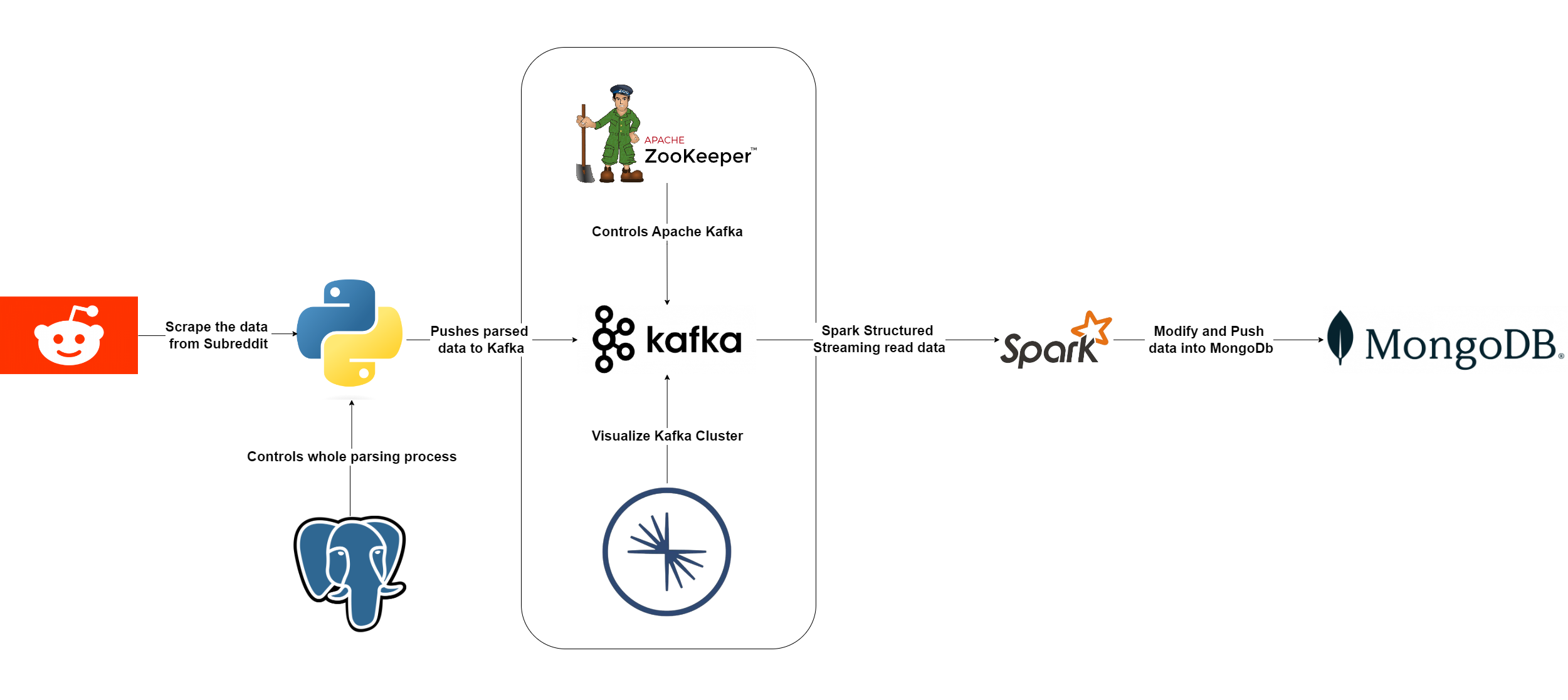 Designed and deployed an end-to-end data pipeline that asynchronously scrapes Reddit subreddits with Playwright, streams events through Kafka, processes them in Apache Spark Structured Streaming, and stores posts and comments in MongoDB with PostgreSQL orchestrating parsing history and control logic. All core infrastructure is containerized with Docker for reproducible, scalable deployment.